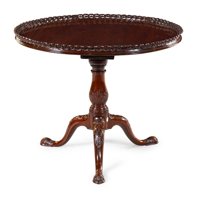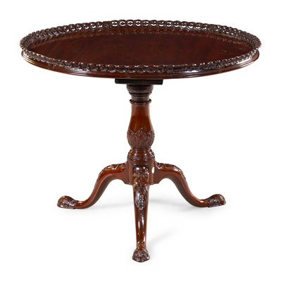 A Chippendale Style Carved, Pierced and Figured Mahogany Tilt-Top Tea Table