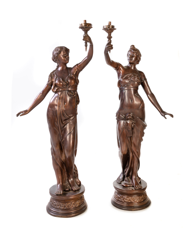 A Pair of Continental Bronze Figural Torcheres