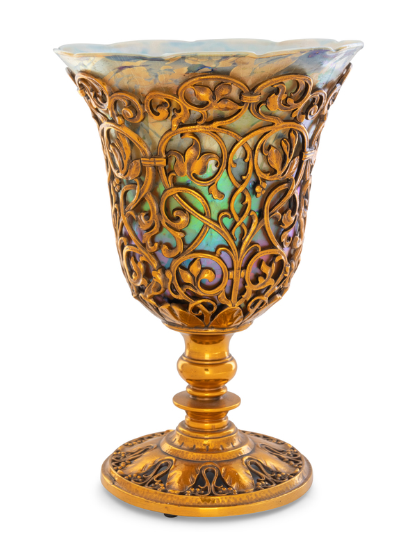 An Art Deco Brass and Steuben Aurene Glass Lamp