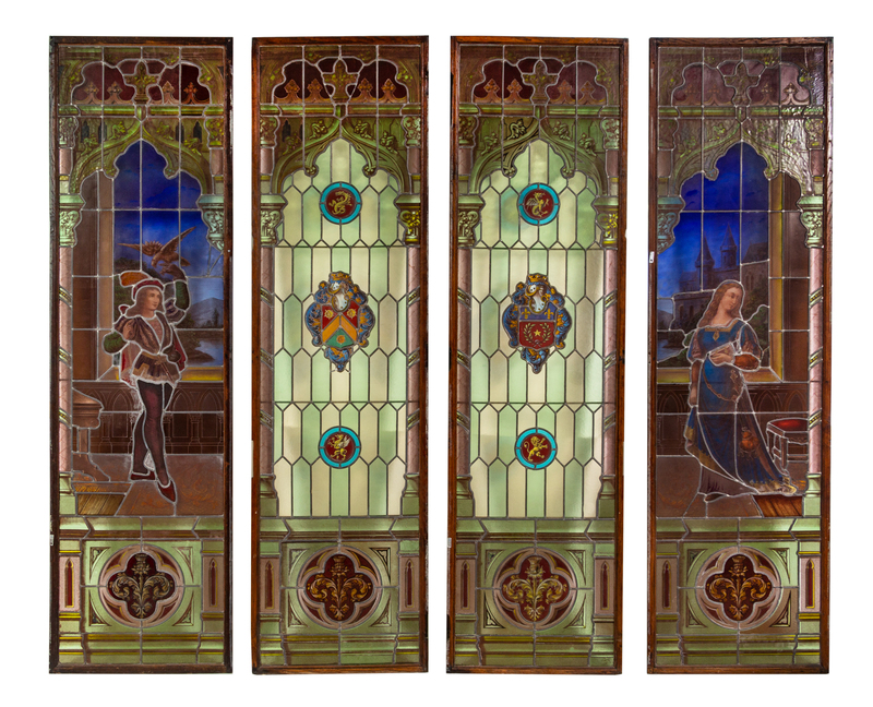 A Set of Four Leaded and Stained Glass Windows