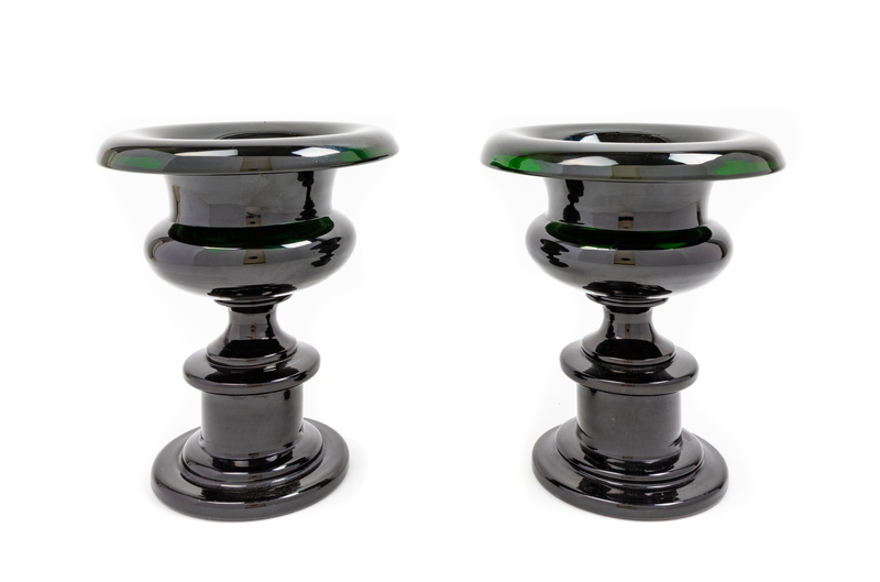 A Pair of Continental Green Glass Jardinieres