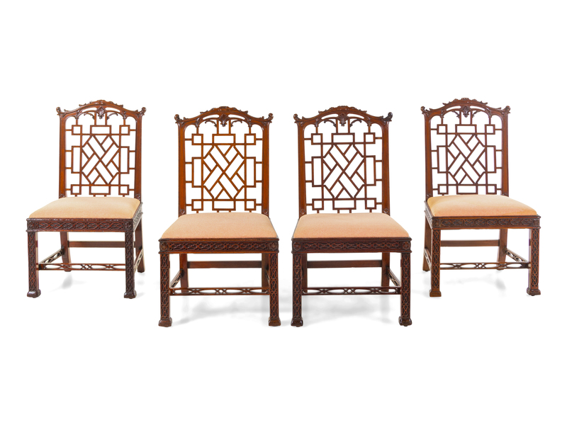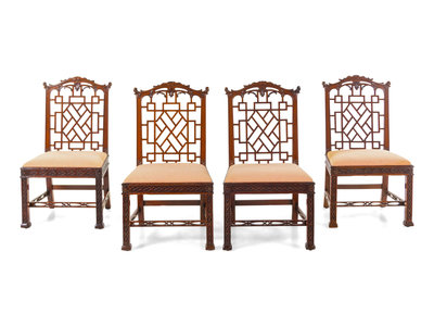 A Set of Four Chinese Chippendale Mahogany Dining Chairs