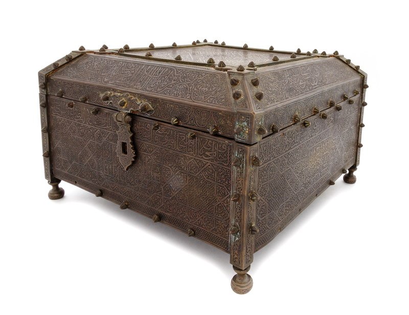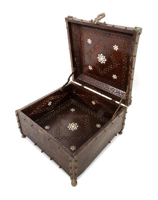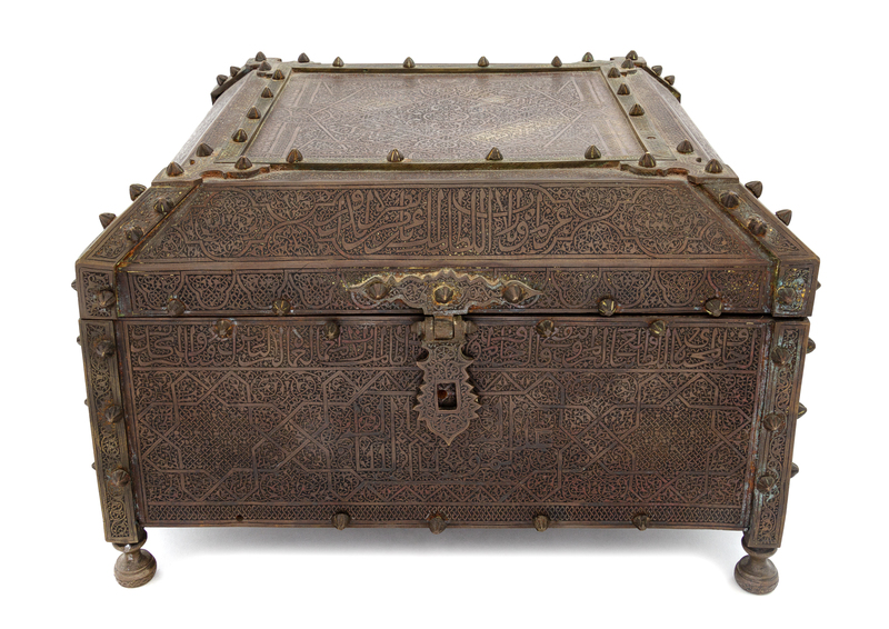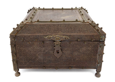 A Mamluk Revival Brass and Mother-of-Pearl Inlaid Box
