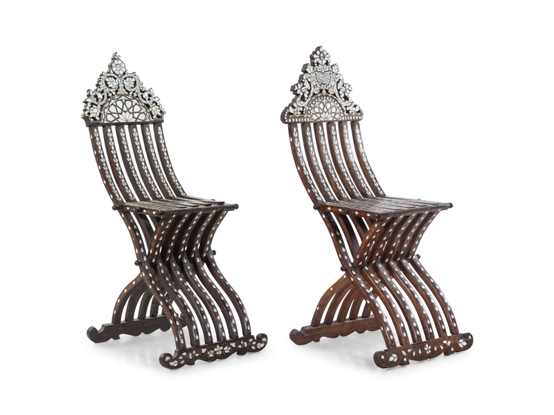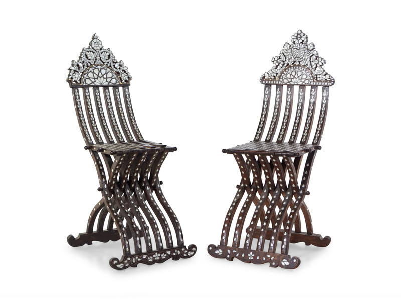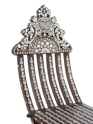 A Near Pair of Ottoman Syrian Mother-of-Pearl Inlaid Chairs