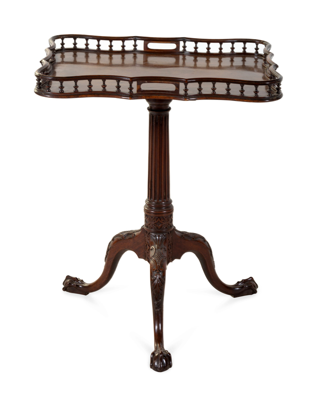 the undulating gallery set on a fluted columnar stem, raised on claw-and-ball feet.