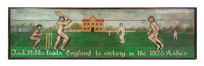 depicting a cricket match, titled Jack Hobbs leads England to victory in the 1926 Ashes.