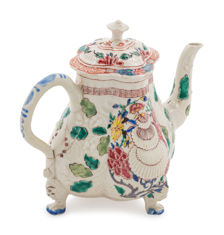 A Staffordshire Enameled Salt-Glazed Stoneware Teapot
