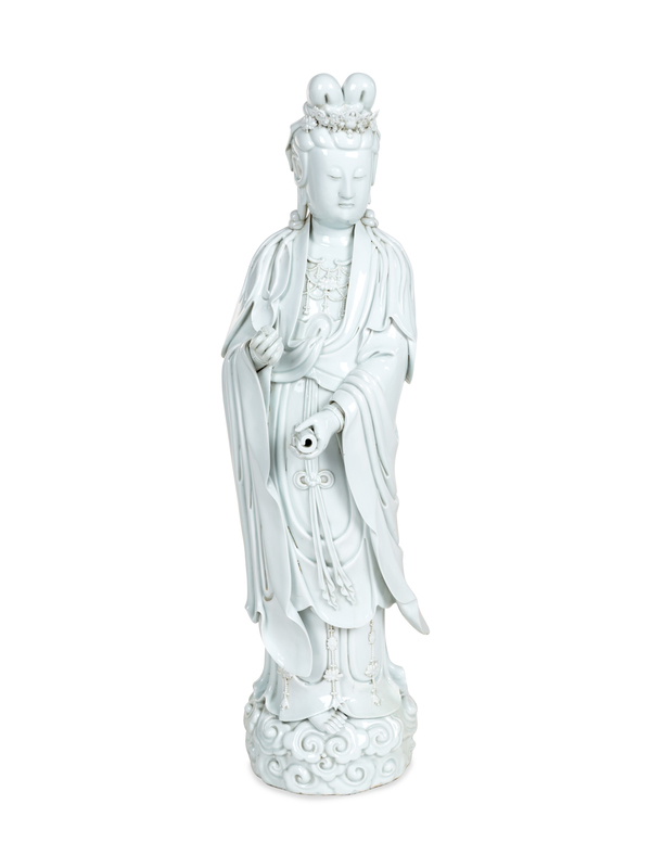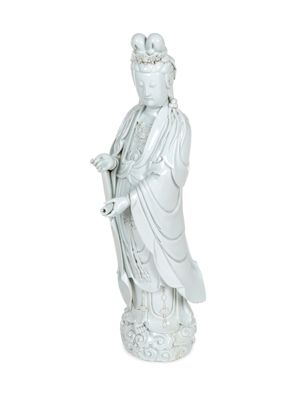 A Large Chinese Blanc-de-Chine Porcelain Figure of Guanyin