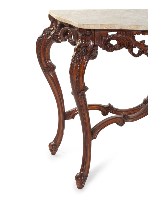 A Pair of Louis XV Style Carved Walnut Console Tables