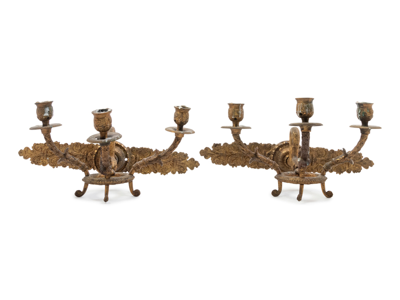 A Pair of Empire Style Gilt Bronze Three-Light Sconces