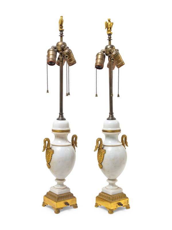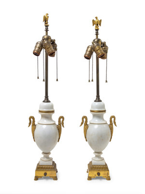 A Pair of Empire Style Gilt Bronze Mounted Urns