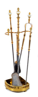 A Set of French Gilt Bronze and Onyx Mounted Fireplace Tools
