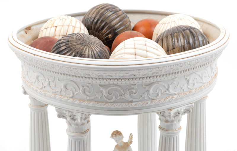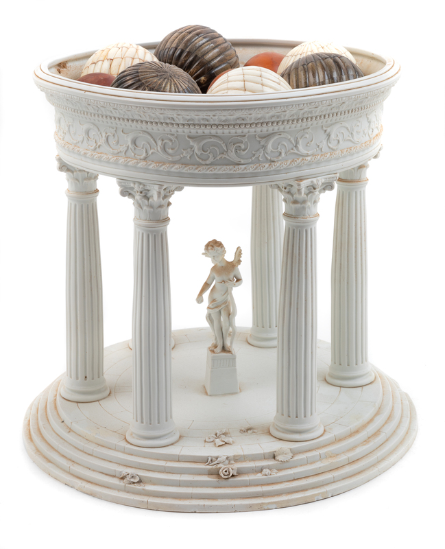 A Grand Tour Style Bisque Architectural Model with a Collection of Bone and Marble Ornaments