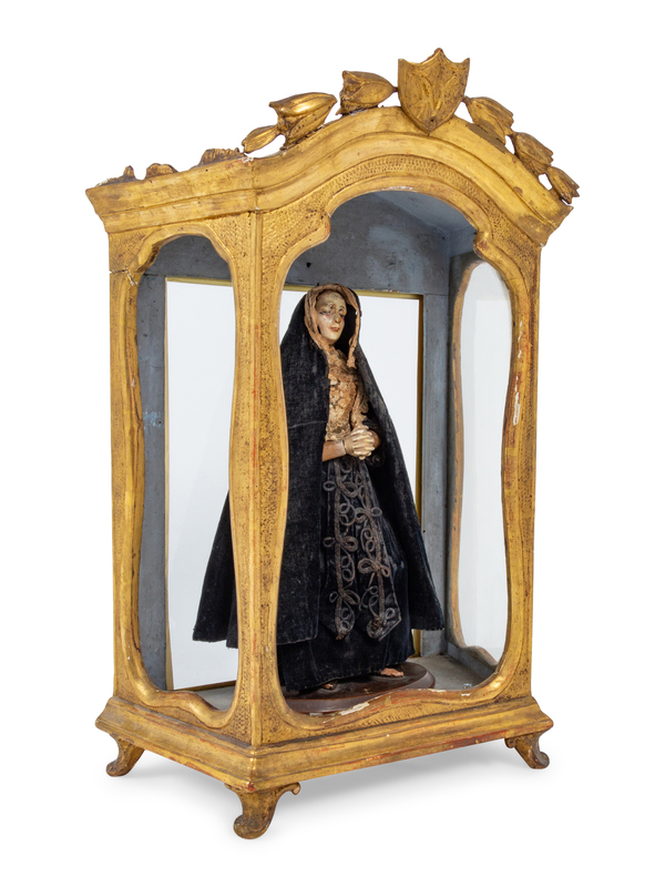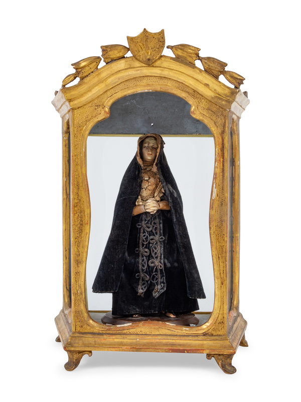 A Continental Giltwood Reliquary with a Painted Figure of a Saint