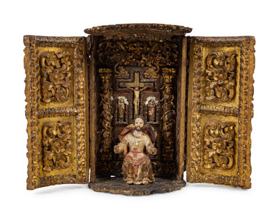 A Continental Giltwood Reliquary with a Figure of a Saint