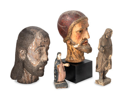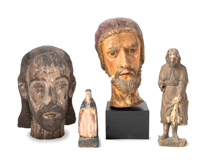 Four Continental Carved and Painted Wood Articles