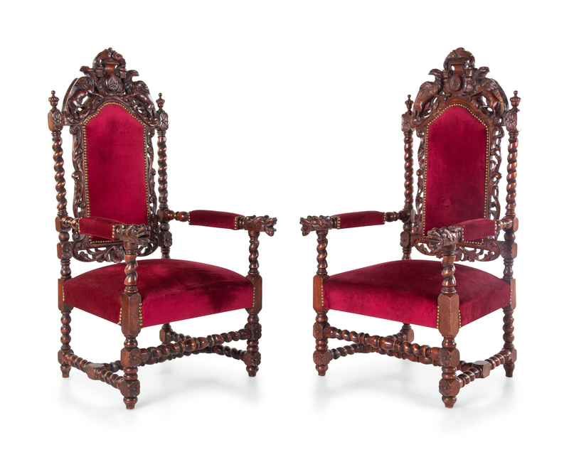A Pair of Renaissance Revival Carved Open Armchairs (ETA #9)