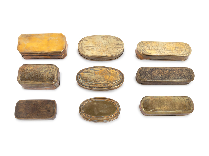 A Collection of Eighteen Dutch Brass Tobacco Boxes