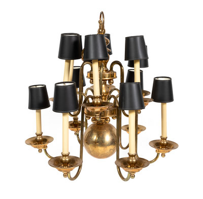 A Dutch Baroque Style Brass Six-Light Chandelier