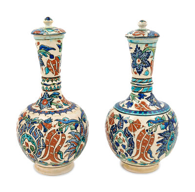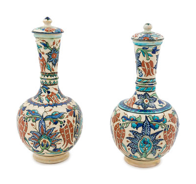 A Pair of Iznik Style Pottery Jars