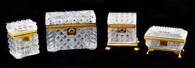 Four French Gilt Metal Mounted Cut Glass Table Boxes