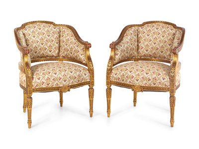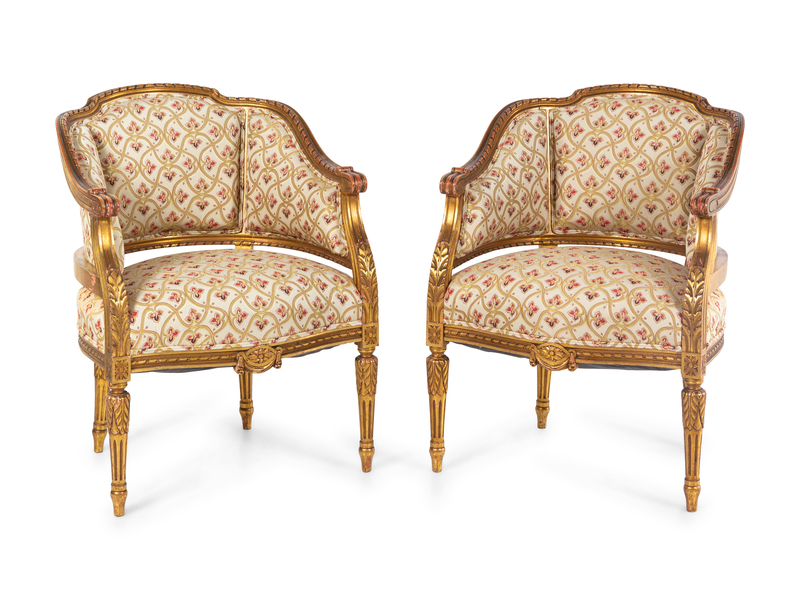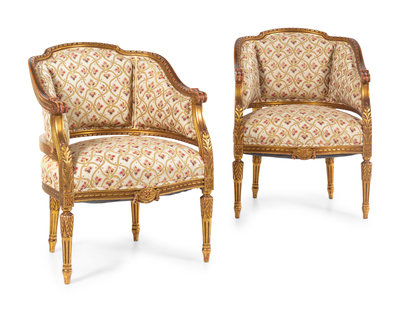 A Pair of Louis XVI Style Giltwood Bergeres