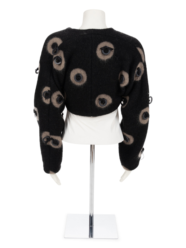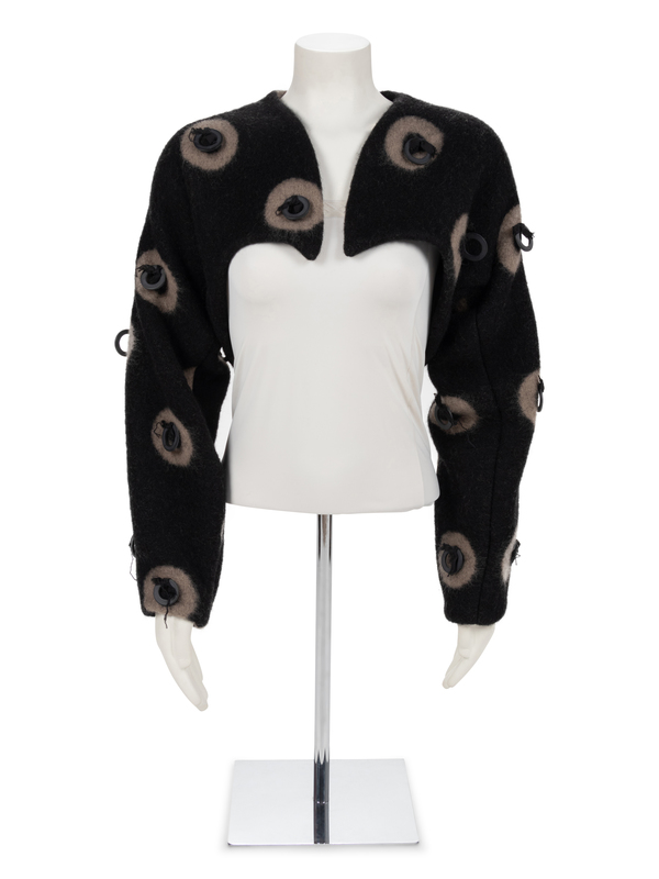 Geoffrey Beene Black and Grey Mohair Bolero with Ring Embellishment, Fall 1996