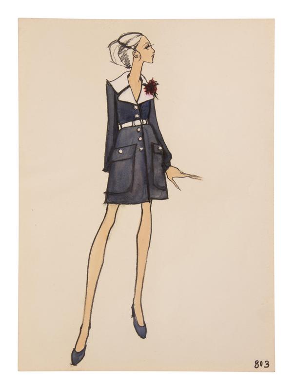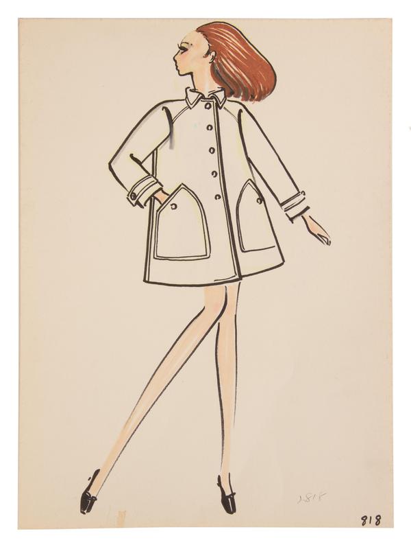 Pencil and marker on card, which measures: 11" x 15". Unsigned. Illustrations were stored in the Geoffrey Beene Archive in a box marked 'Illustrations by Issey Miyake'.
