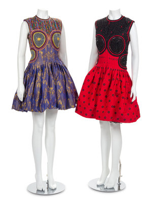Two Geoffrey Beene Embroidered Dresses, Fall 1990