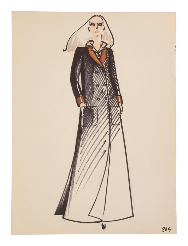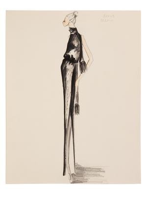 Pencil and marker on card, which measures: 11" x 15". Unsigned. Illustration was stored in the Geoffrey Beene Archive in a box marked 'Illustrations by Issey Miyake'.