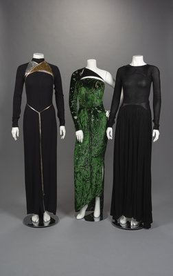 Three Geoffrey Panne Velvet Evening Dresses, Fall 1990