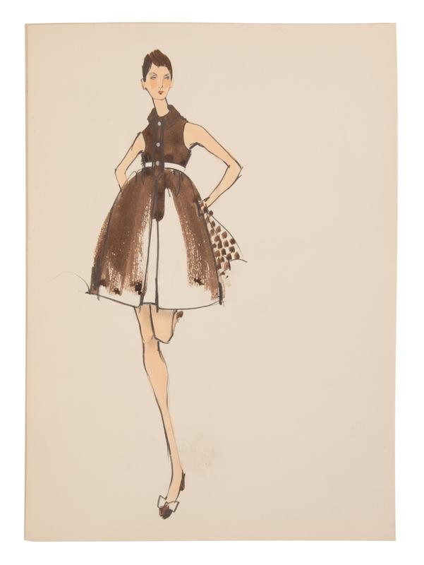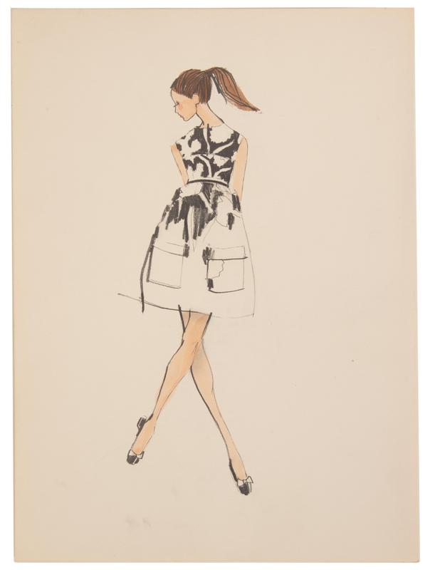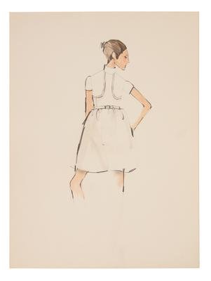 Pencil, marker and water color on paper, which measures approximately 11" x 15". All illustrations are unsigned. All illustrations were stored in a box at the Geoffrey Beene Archive in a box marked, 'Illustrations by Michaele Vollbracht'.