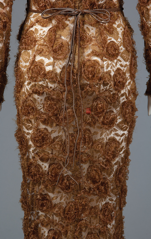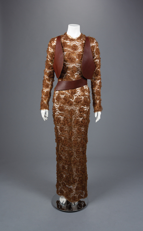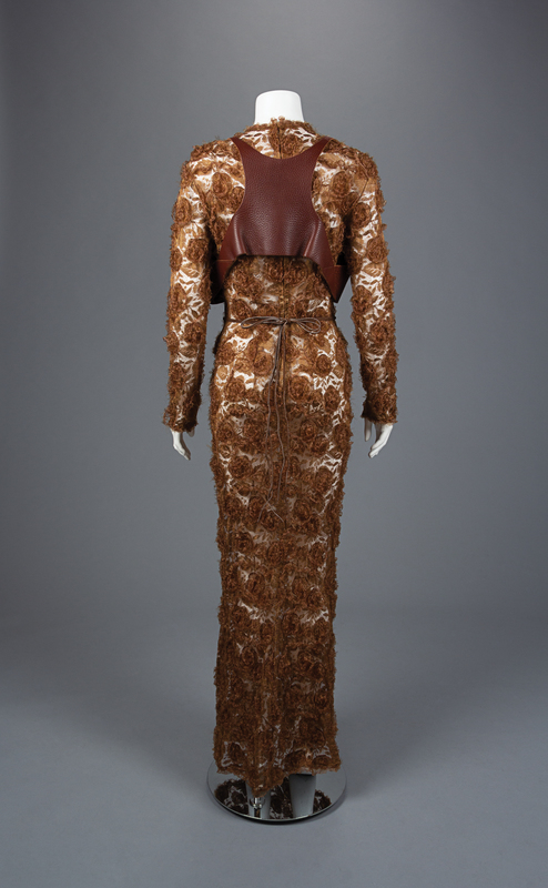 Geoffrey Beene Embroidered Lace and Leather Dress, Fall 1995