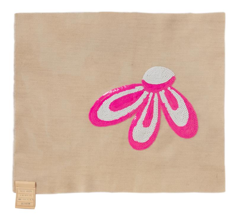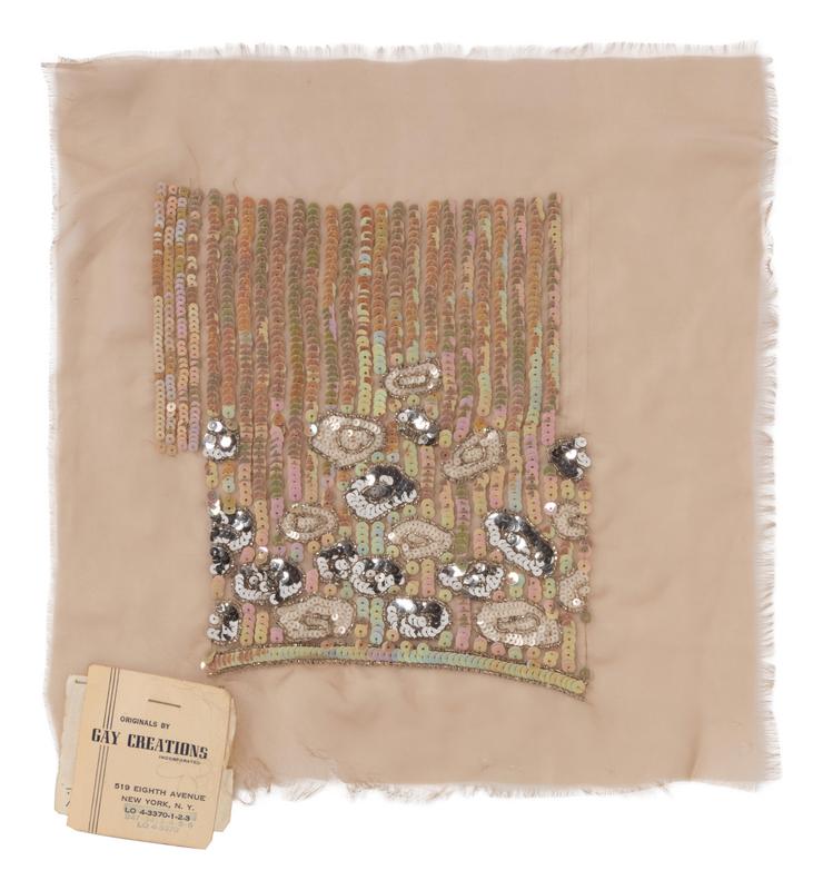The third is with pink and white sequins on cream fabric. Label: Miss Anea / 2 W. 47th St. / New York 36, N.Y. / JU 2-373