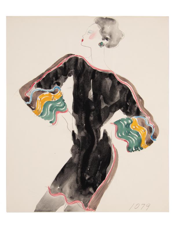 Watercolor and pencil on paper, which measures: 14" x 17". This illustration was stored in the Geoffrey Beene Archive in a box marked 'Illustrations by Jesper Nyeboe'.