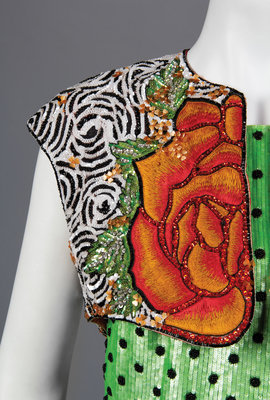 A duplicate of this dress was featured in a detail photograph by Victor Skrebneski in Town & Country in May 1991. The same Skrebneski image is featured on page 55 of the 1995 'Geoffrey Beene' book by Brenda Cullerton.