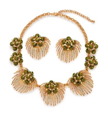 -One Gold Toned with green Rhinestone Palm Shaped Necklace