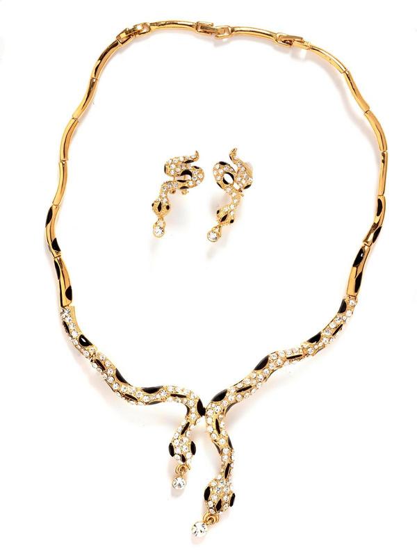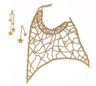 -One gold tone and rhinestone necklace with matching star shaped earrings