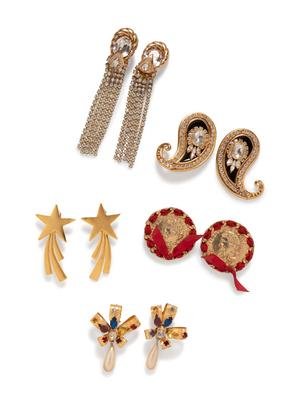 -One set of gold-tone metal, black enamel, and rhinestone paisley earrings