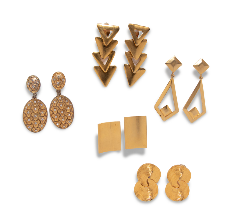 Assortment of 14 Pairs of Goldtone Earrings, 1980-2000s