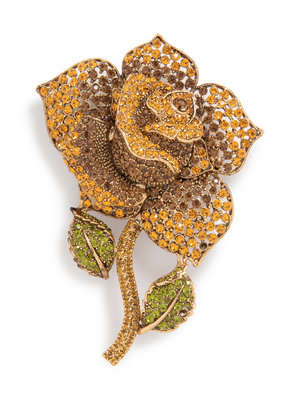 -One Blue and Green Rhinestone gold toned metal floral branch pin