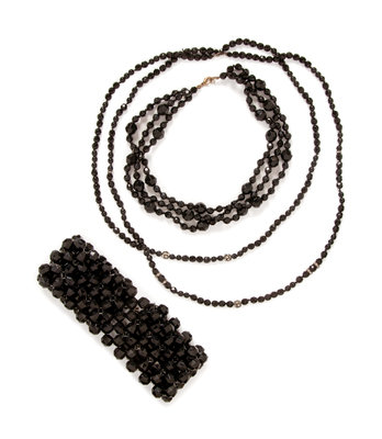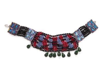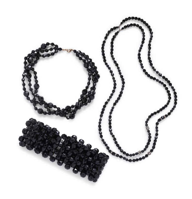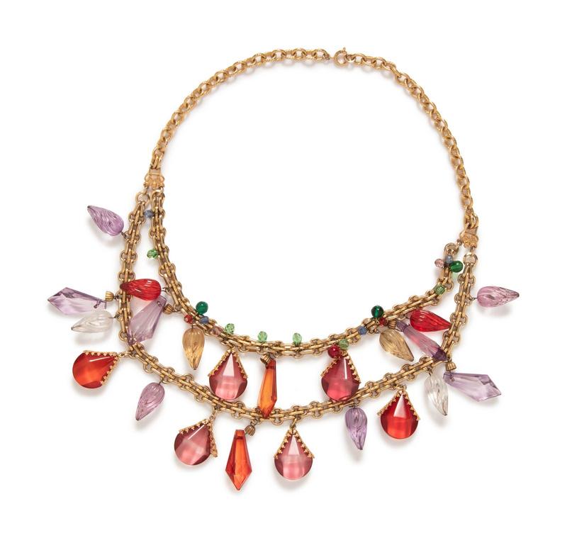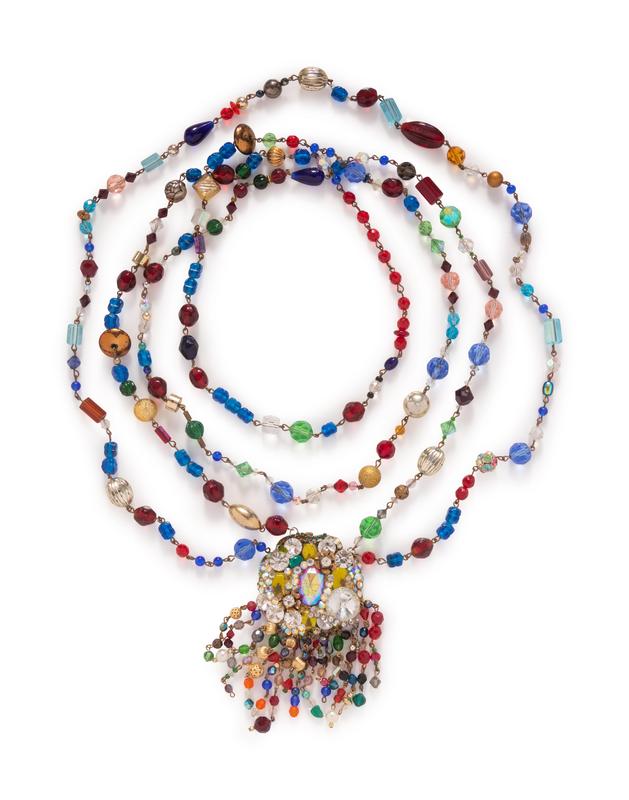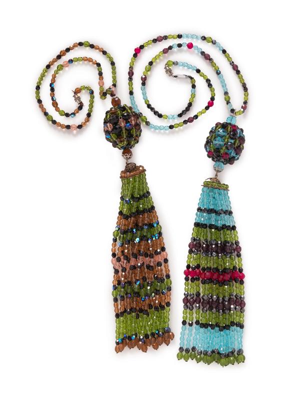 -Three multi-colored costume necklaces, one choker and two long tassel pieces