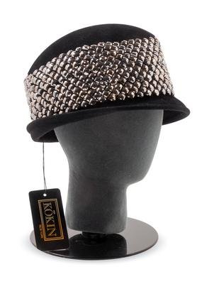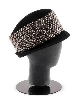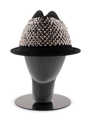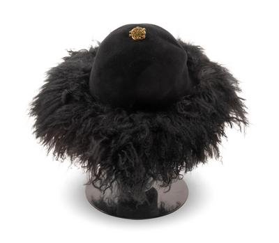 -One Oscar de la Renta felt and shearling trimmed hat with rhinestone and gold tone topper.