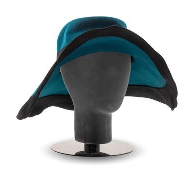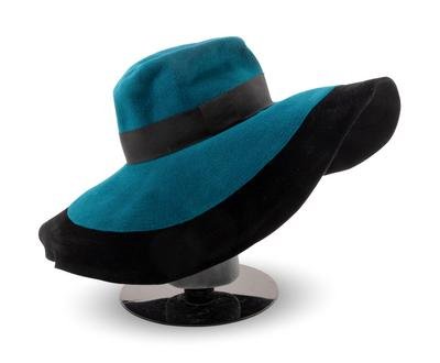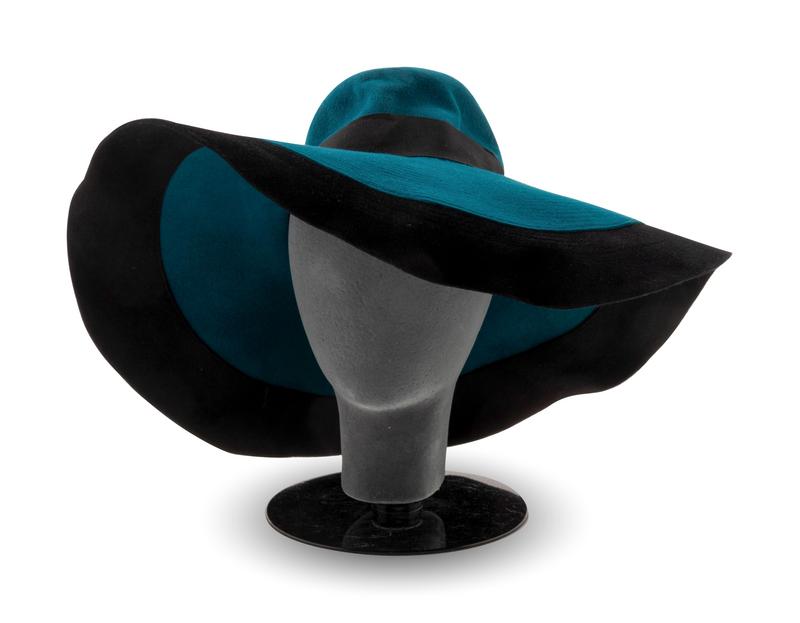 -Jean-Louis Scherrer Teal and Black Felt Wide Brimmed Hat