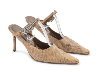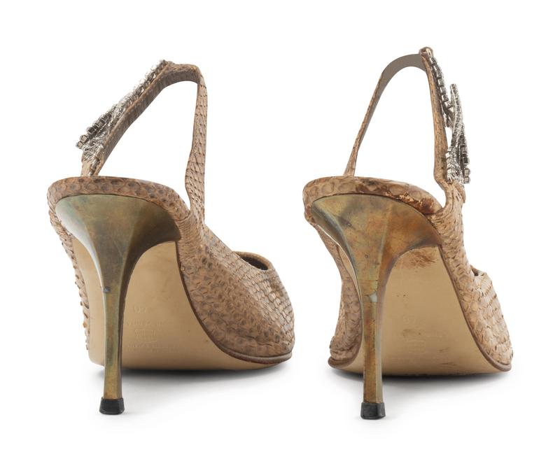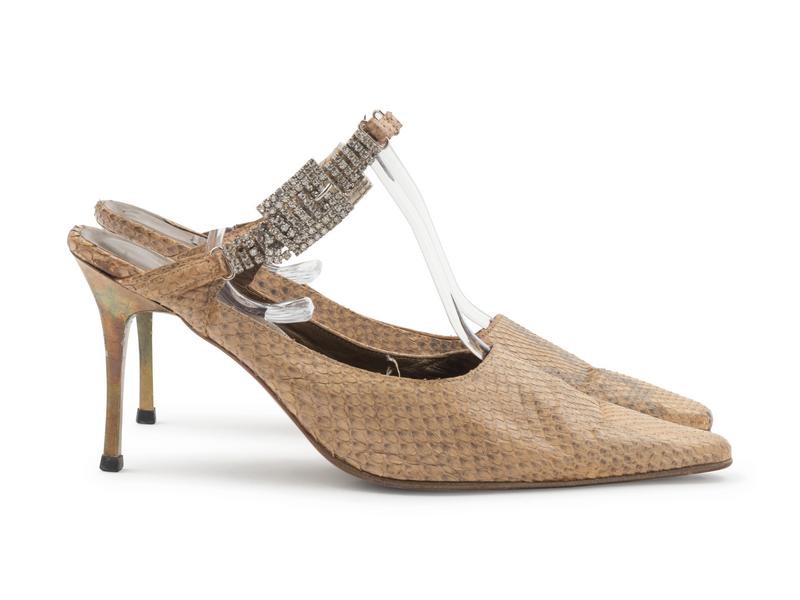 -One pair of snake skin slingback heels with rhinestone, size 40