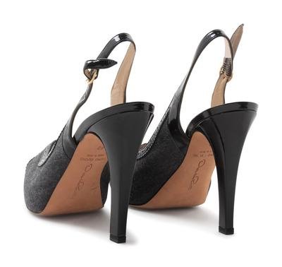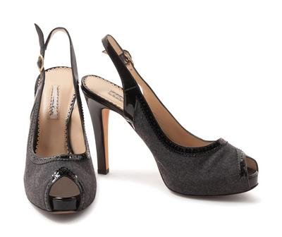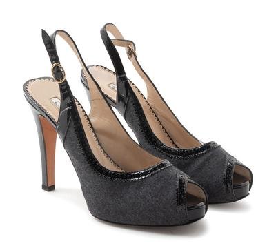 -One pair of de la Renta gray wool peep toe heels, size 40