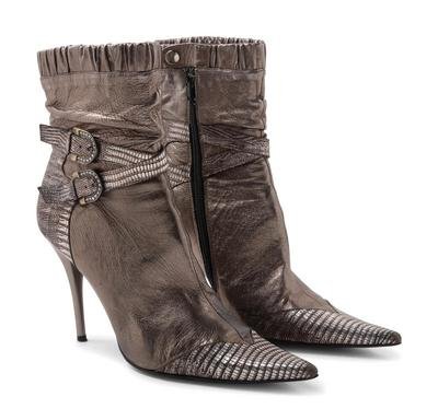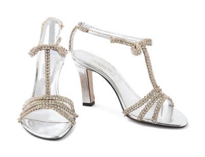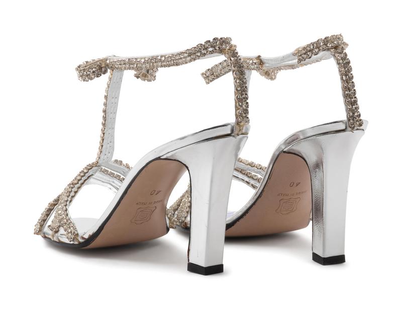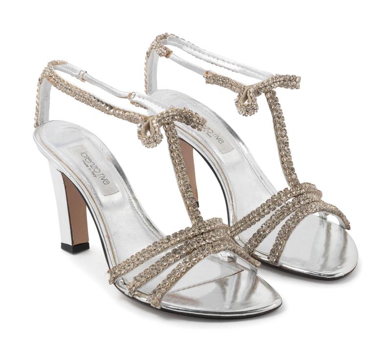 -One pair of Riva silver leather heels with rhinestones, size 40