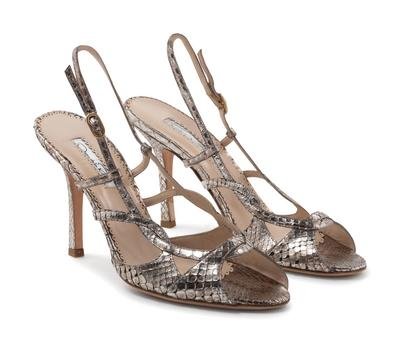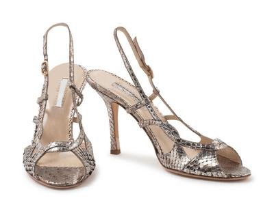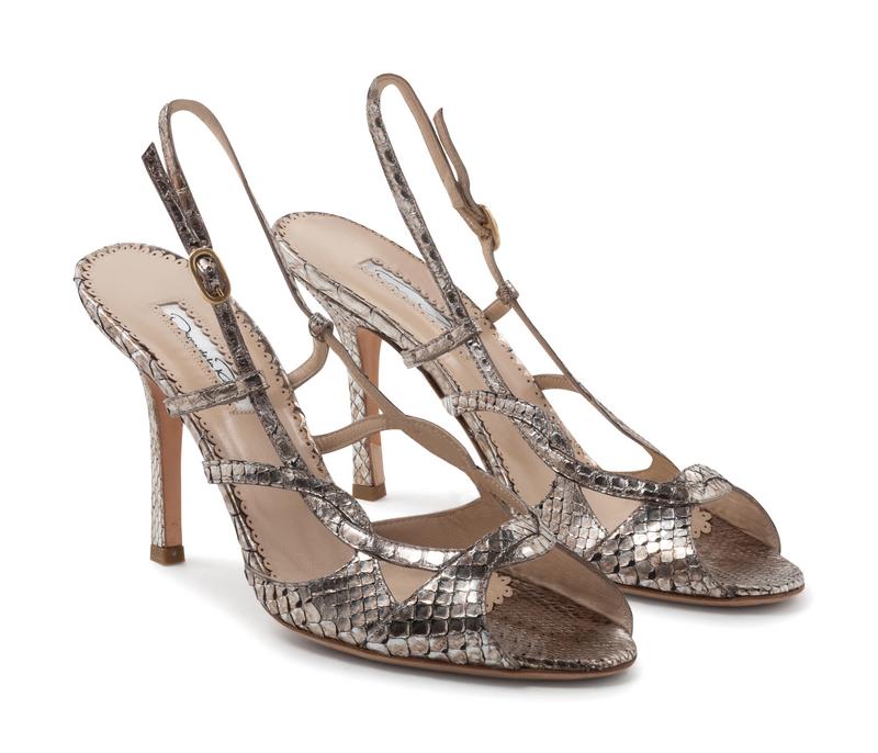 -One pair of de la Renta silver metallic snake skin slingback heels, size 40
