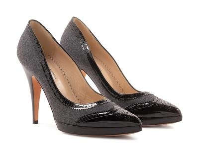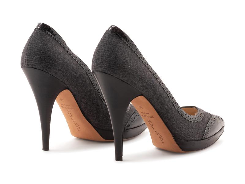 -One pair of de la Renta gray wool wing tip wedges, size 40