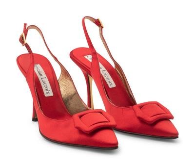 -One pair of Lacroix red satin slingback heels, size 40